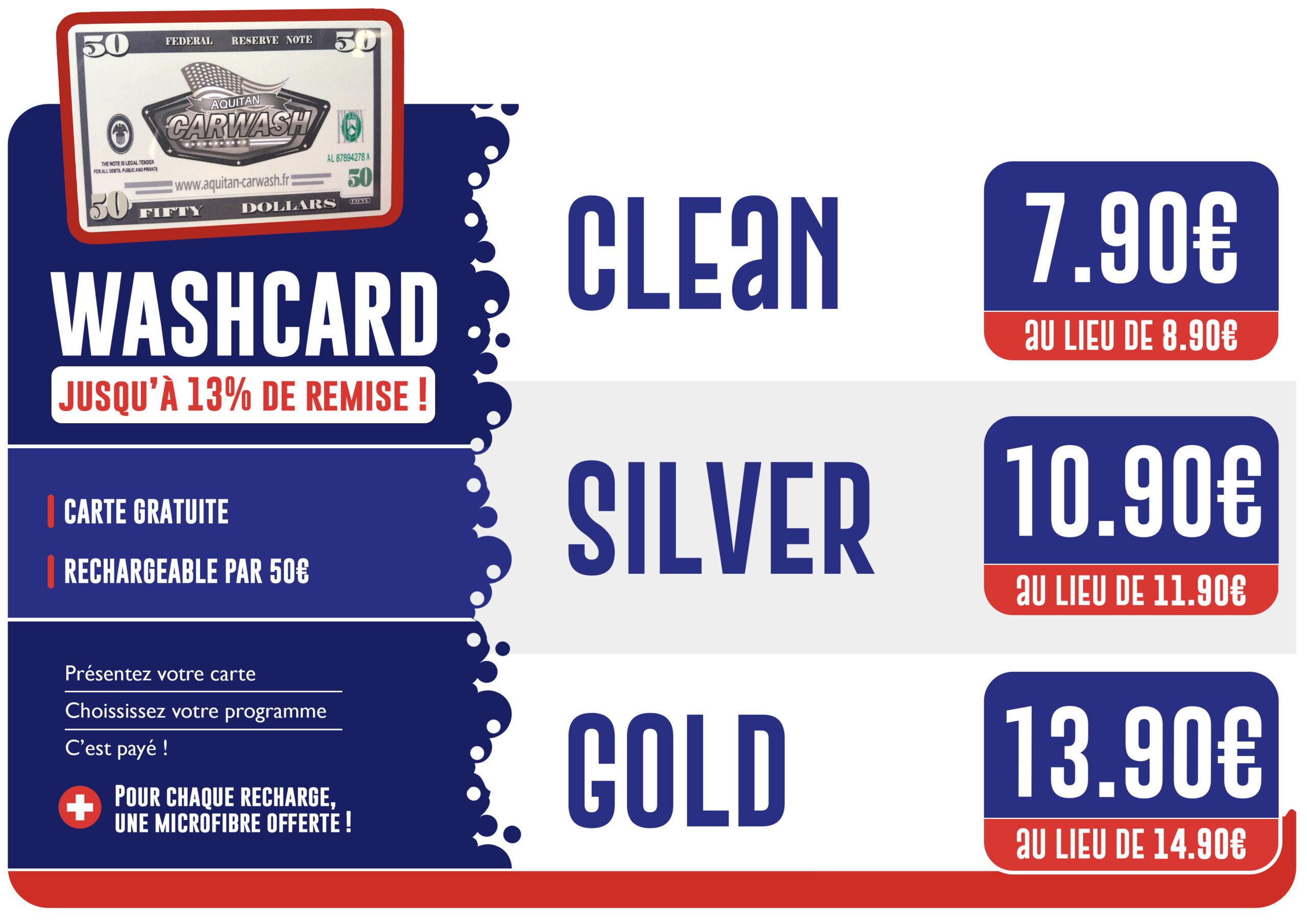 Demandez gratuitement votre « WA$HCARD » et bénéficiez de nouveaux tarifs préférentiels encore plus hallucinants !
